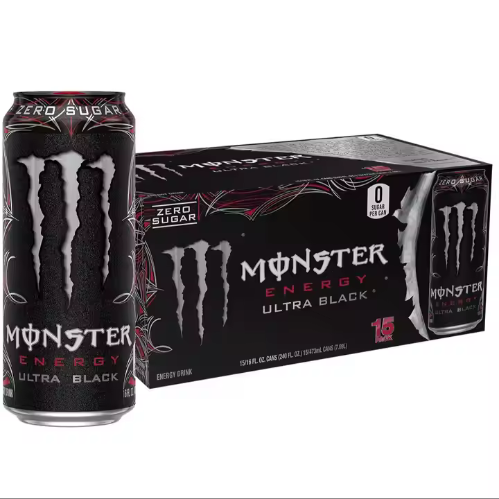 Monster Energy Ultra Black, Sugar Free Energy Drink, 16 Ounce (Pack of 15)